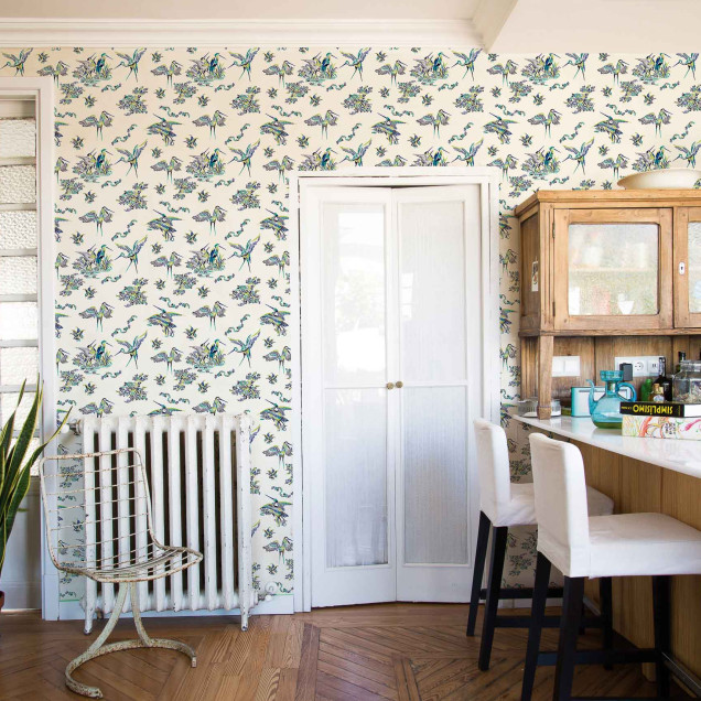 Adaugă un strop de eleganță și rafinament cu acest tapet decorativ. Model delicat cu cocori albaștri, ideal pentru orice cameră. Ușor de aplicat, 5mp/rola.