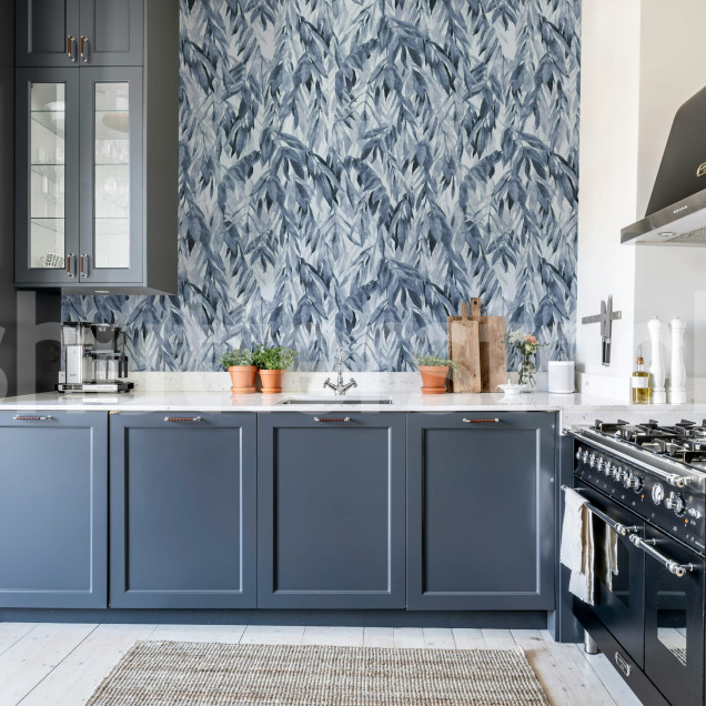Tapetul cu ramuri suspendate, in tonuri de albastru, aduce natura in casa ta. Creeaza un spatiu relaxant si modern, perfect pentru orice incapere.Materiale disponibile