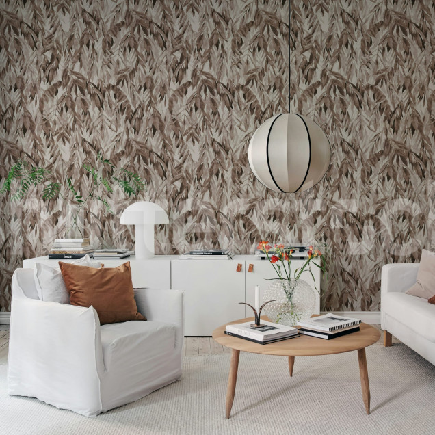 Acest tapet cu ramuri suspendate în nuanțe ruginii adaugă o notă naturală și elegantă oricărui interior. Perfect pentru un decor sofisticat și relaxant.Materiale disponibile