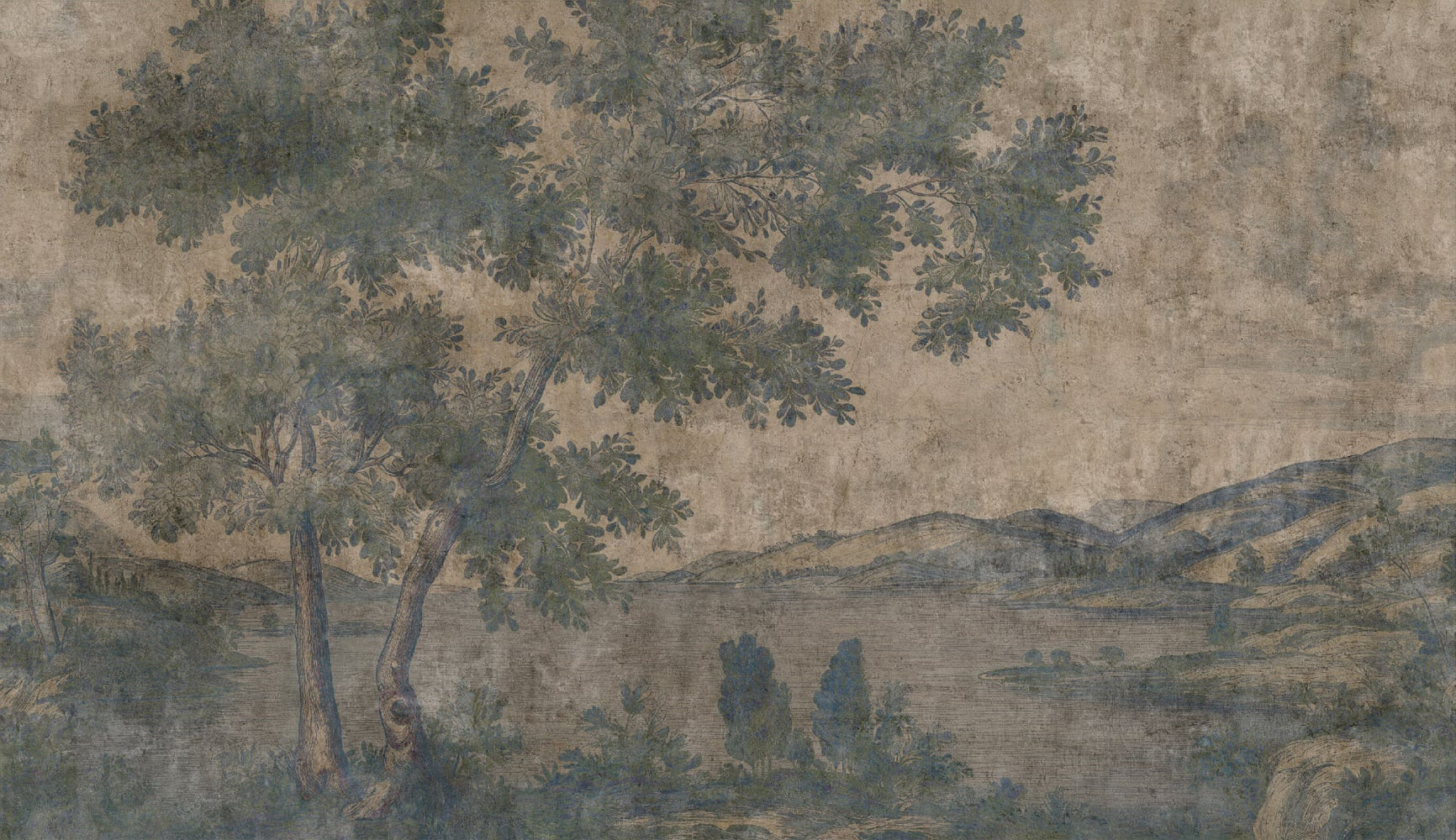 Horizon Gaze Cream wallpaper exprimă eterna dorință de a privi dincolo. Ea invită la căutarea frumuseții și a sensului acolo unde pământul se întâlnește cu cerul. Această murală lucrată manual este un tablou poetic panoramic, pictat cu degraduri blânde de albastru, terracotă și verde pal. Evocă peisaje scăldate în lumină aurie.
