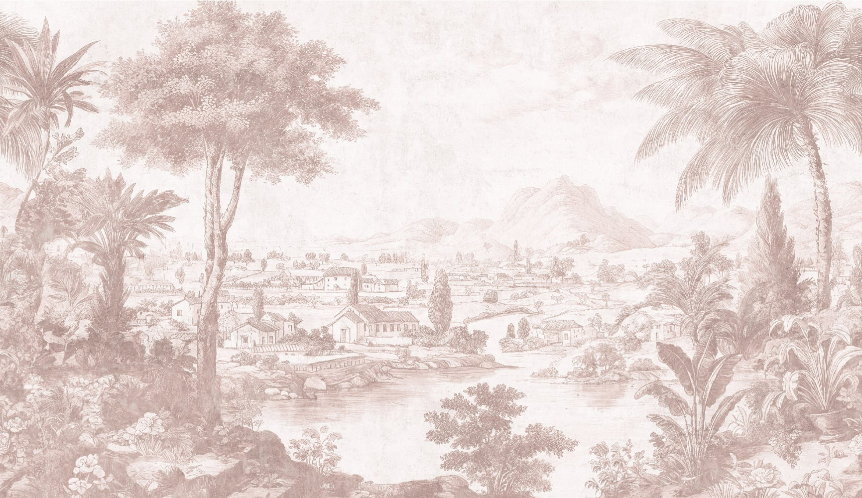 Imperial Palms Rose este o celebrare a măreției exotice, care amintește de grădinile coloniale și curțile palatale, unde natura prosperă într-o splendoare aristocratică. Tapetul înfățișează siluete de palmieri care se ridică cu măreție. Acestea sunt încadrate de nuanțe de verde smarald, de căldura teracotei și de accente aurii subtile.