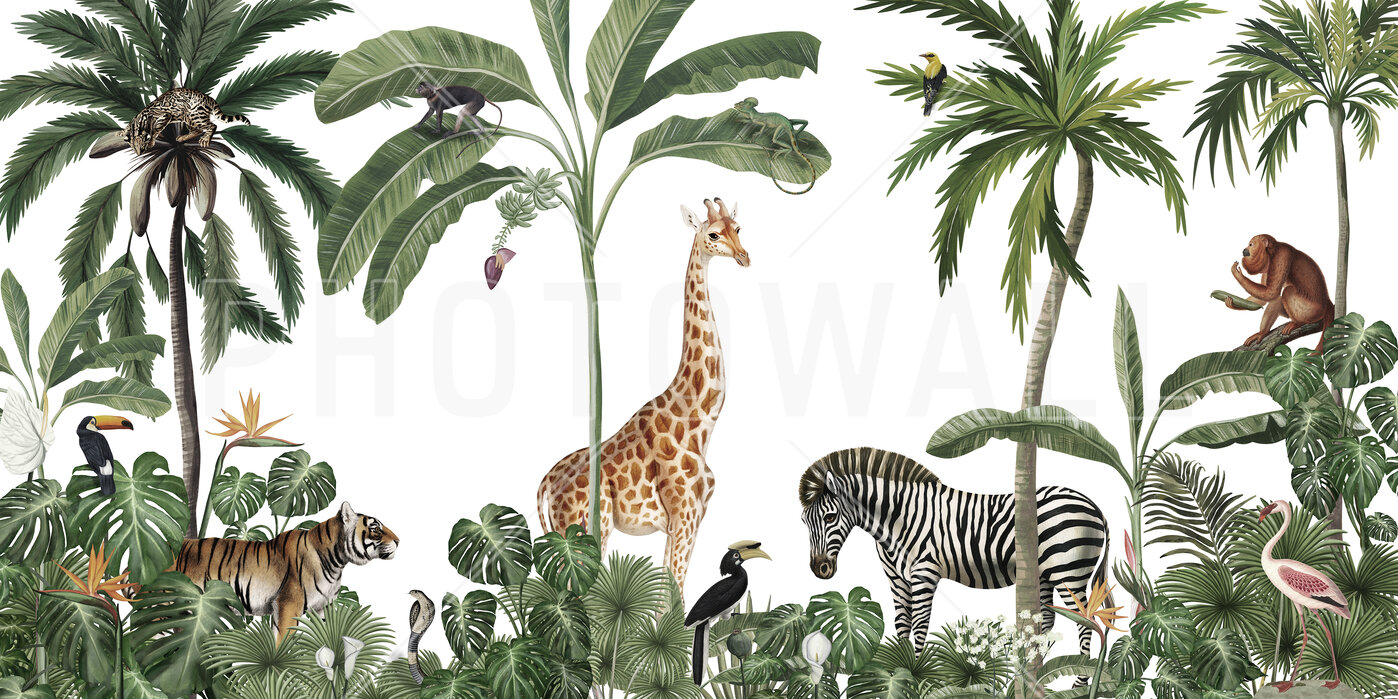 Jungle Jive - White, Photowall Fototapet Junglă Albă pentru Camera Copilului