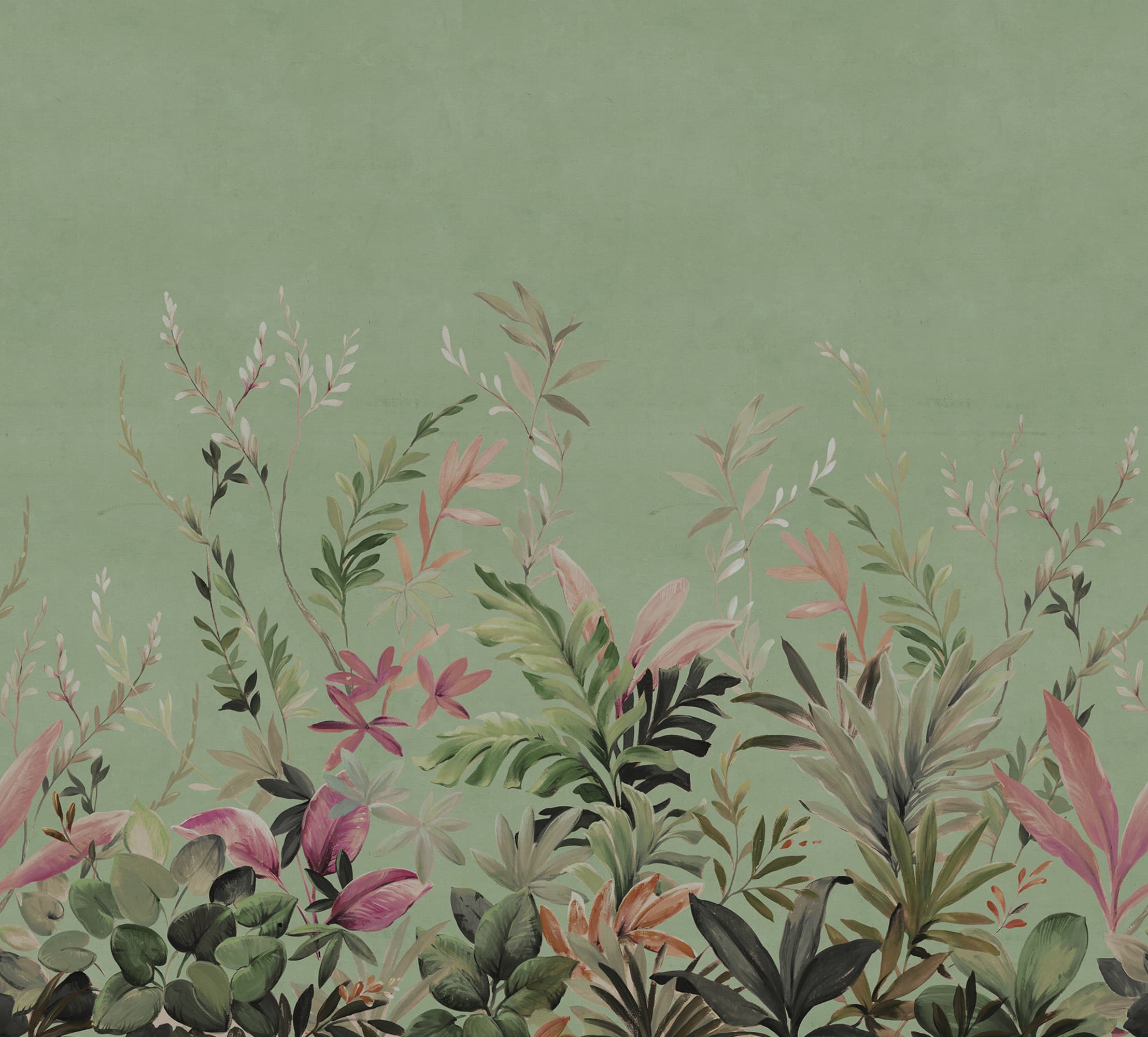 Jungle Meadow, Green, Rebel Walls Fototapet Floral Verde pentru un Interior Vibrant