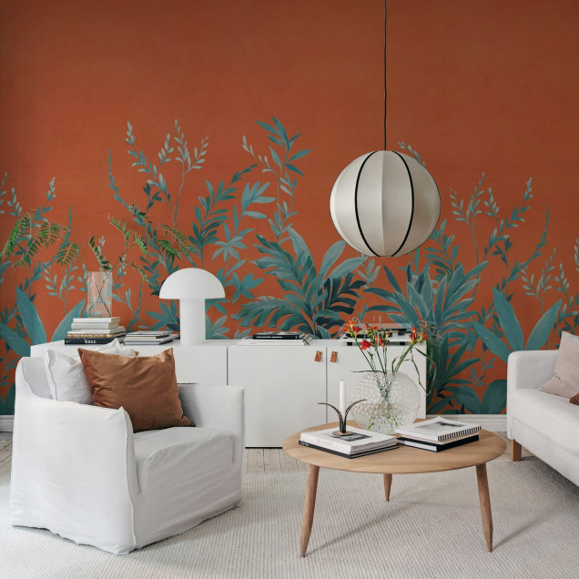 Jungle Meadow, Orange, Rebel Walls Tapet și Fototapet cu Design Botanic