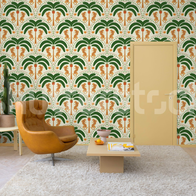 Acest tapet aduce un strop de junglă în locuința ta. Palieri verzi și detalii cu leoparzi crează un decor vibrant și plin de energie. Perfect pentru living, dormitor sau birou, adaugă un aer tropical instantaneu.Materiale disponibile