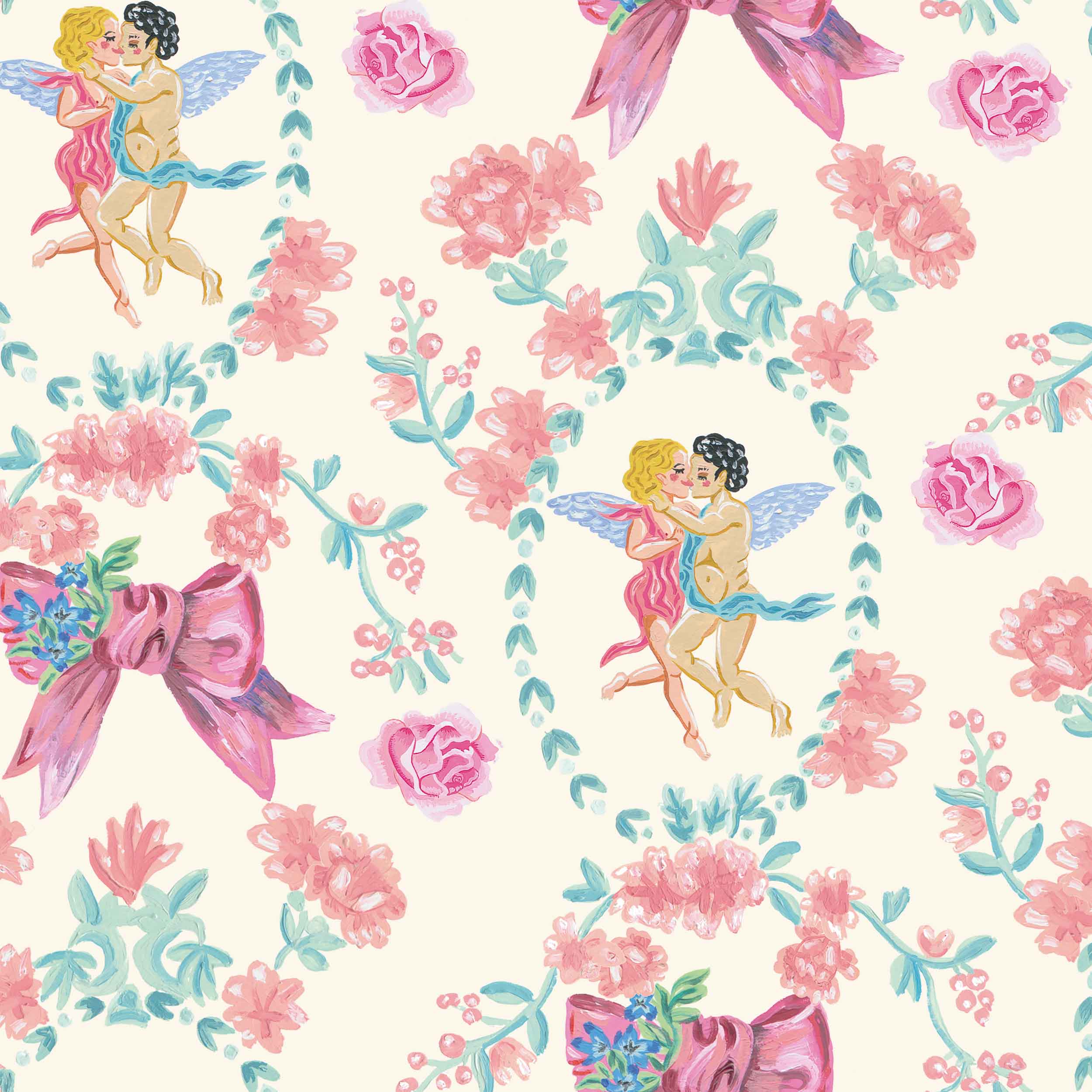 Kissing the Sky, Hueso, Coordonne, 5mp / rola Tapet Floral Romantic pentru un Interior de Vis