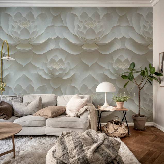 Lotus Dream, White, Rebel Walls Tapet Floral Elegant pentru un Interior Rafinat