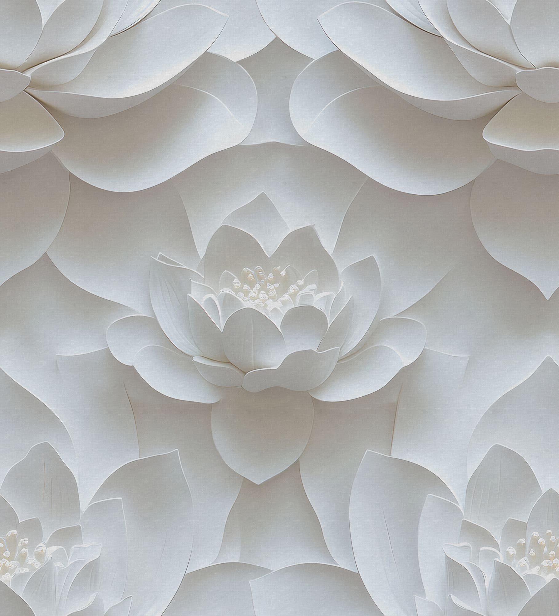Acest tapet încântător aduce un suflu de rafinament și serenitate în orice cameră. Designul delicat cu flori de lotus albe creează o atmosferă relaxantă și primitoare.Materiale disponibile