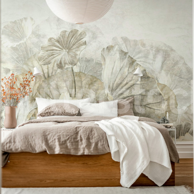Lotus Leafs, Beige, Rebel Walls Tapet Elegant cu Frunze de Lotus
