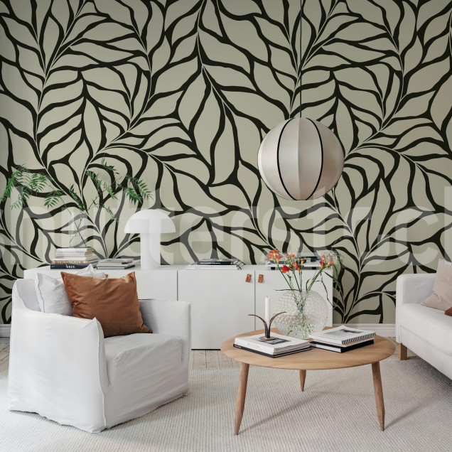 Midnight Vines, Black, Rebel Walls Tapet Decorativ cu Design Floral Stilizat