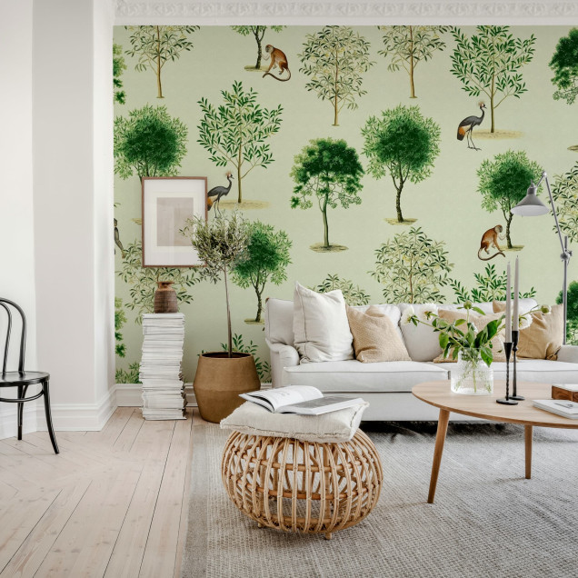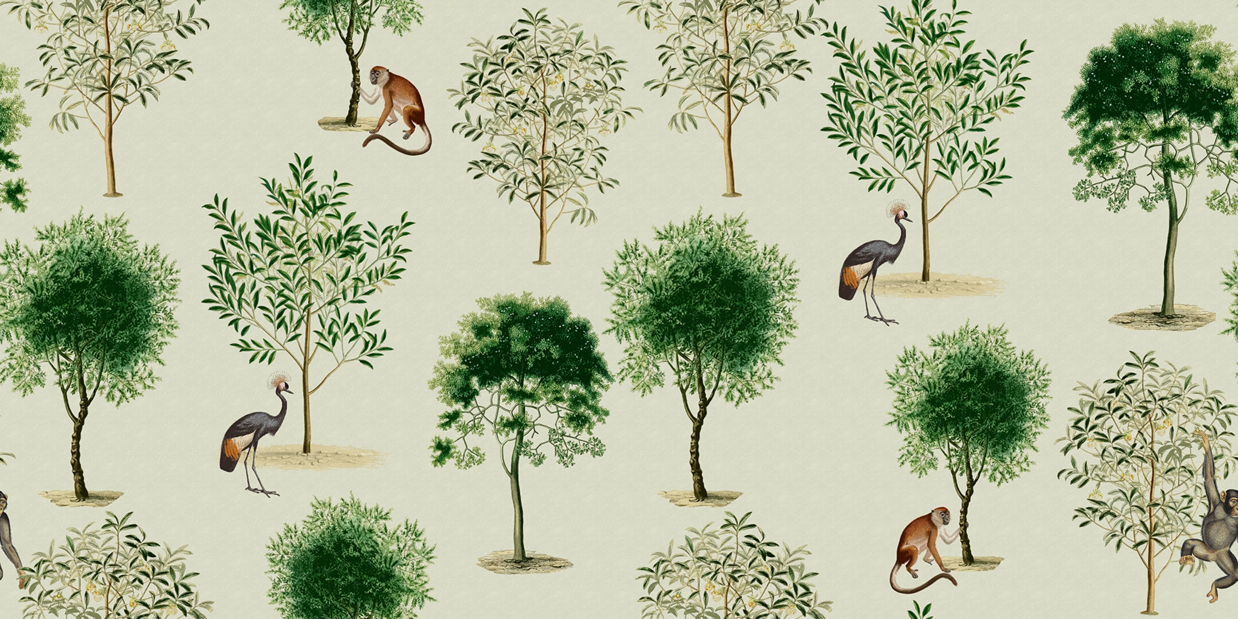 Monkey Among Trees, Beige, Rebel Walls Tapet decorativ cu model natură și animale