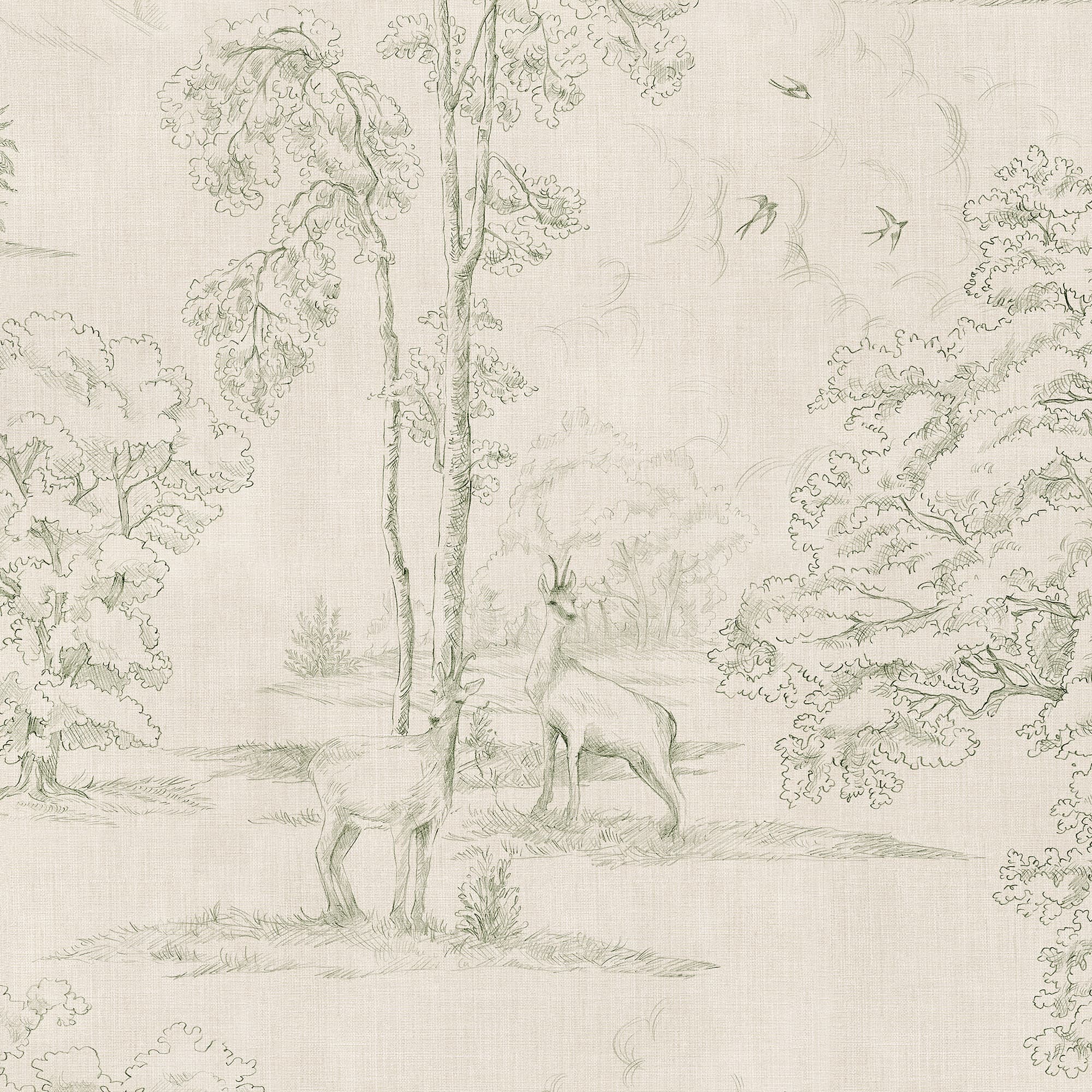 Montfort Mural, Olive Green, Sandberg Tapet cu peisaj elegant, verde măsliniu