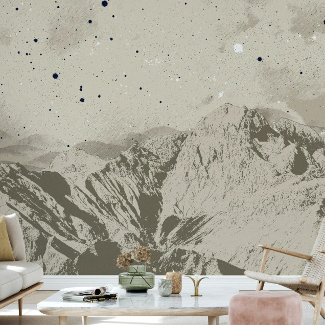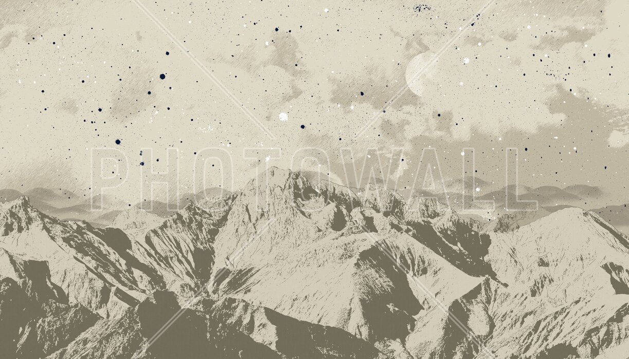 Mountain Nightscape - Beige, Photowall Fototapet cu peisaj montan bej