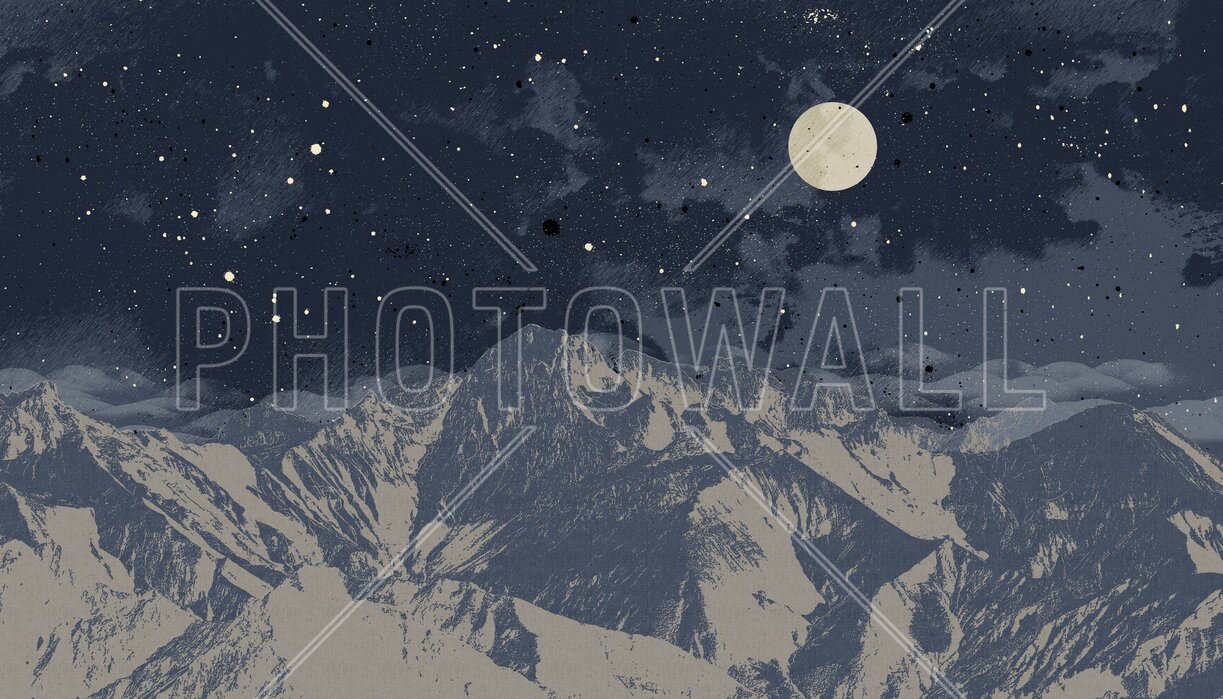 Mountain Nightscape - Blue, Photowall Fototapet Peisaj Montan Nocturn - Albastru