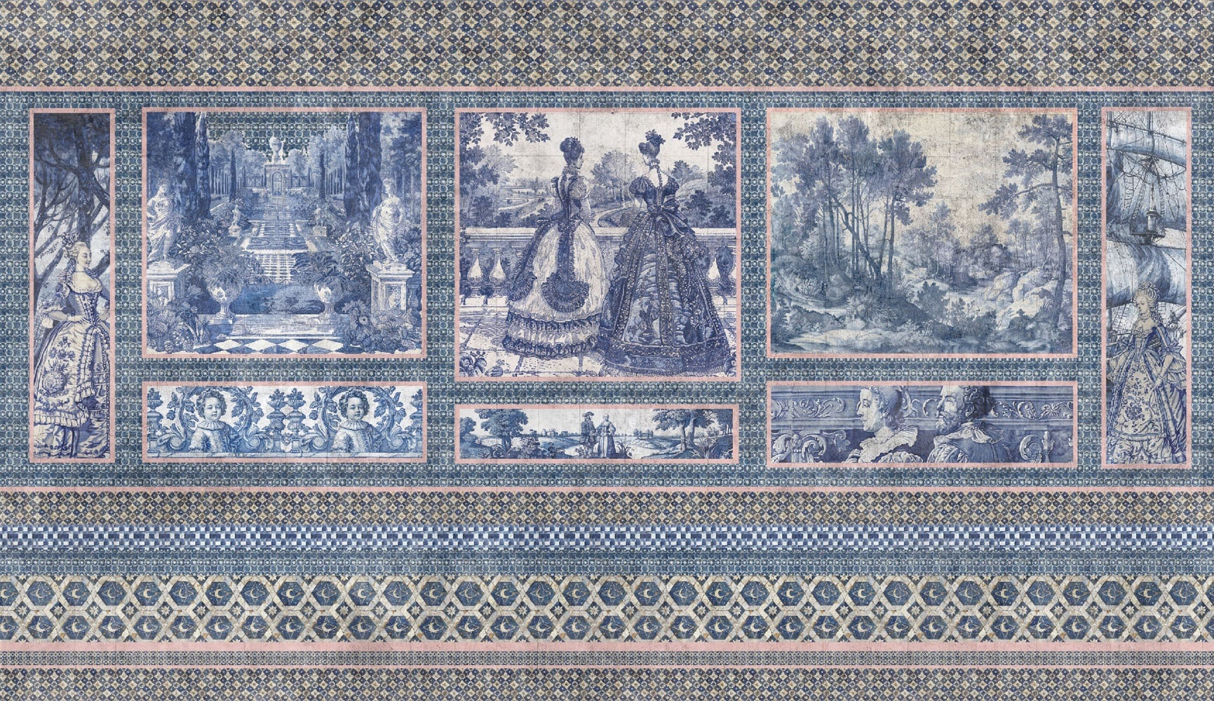 Tapetul Mythic Panorama este o frescă grandioasă a legendelor atemporale. Scene mitologice se desfășoară pe paneluri cu artă barocă. Pereții se transformă în teatre ale istoriei și imaginației.