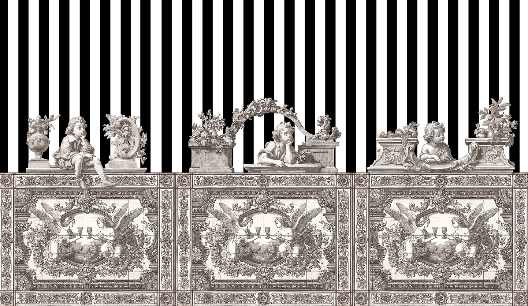 Opulent Friezes este un tapet cu grandoare sculpturală, ce amintește de reliefurile clasice și ornamentele baroce. Inspirat de pereți palatului împodobiți cu frize mitologice, acest mural transformă interioarele în temple ale artei și ale patrimoniului.