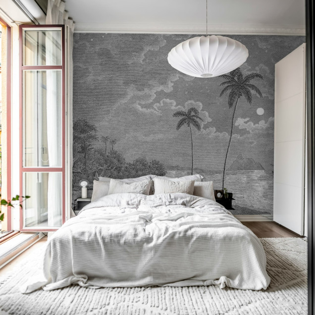 Palm Beach, Black & White, Rebel Walls Fototapet Exotic Alb-Negru pentru Interioare Elegante