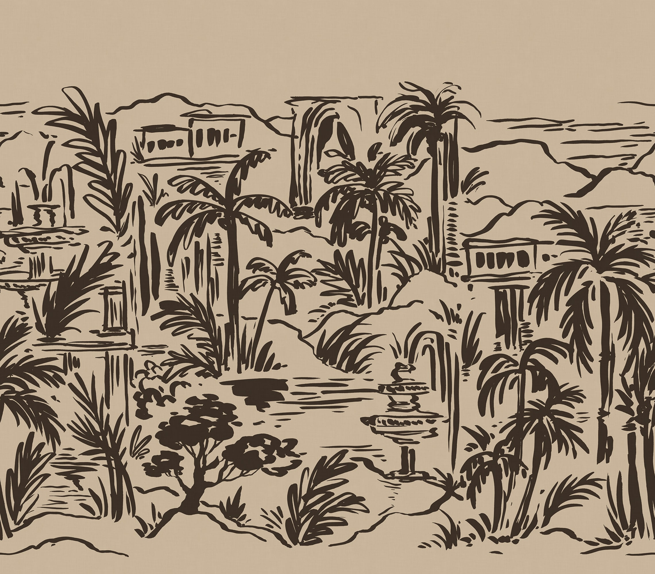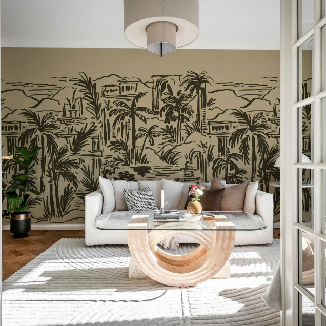 Palm Oasis, Black, Rebel Walls Fototapet cu Design Tropical Elegant