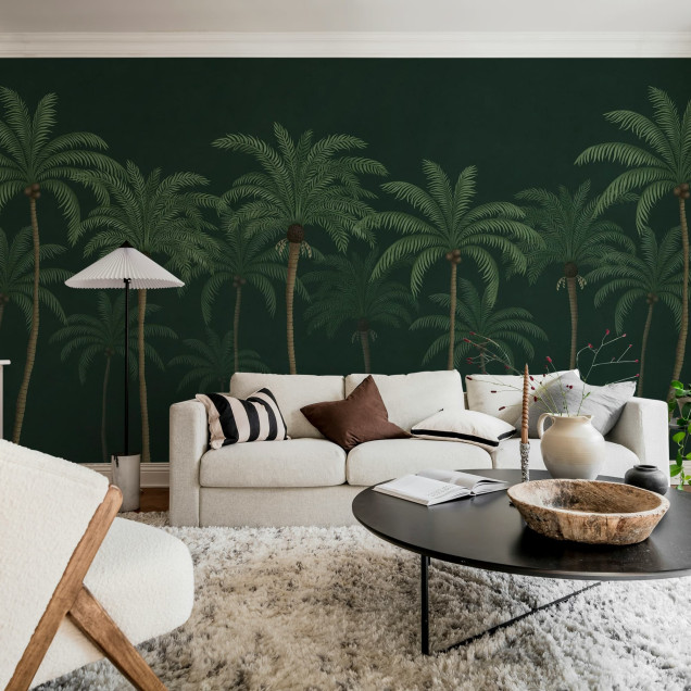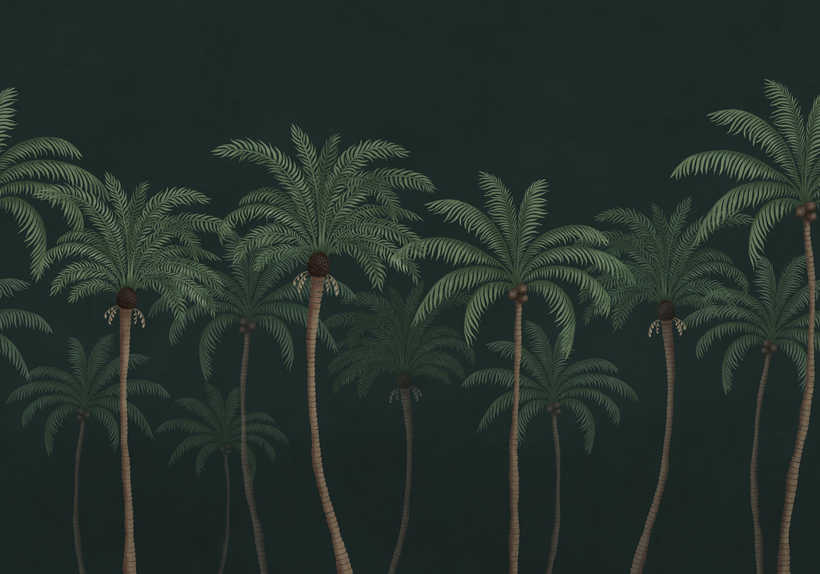 Palm Parade, Black, Rebel Walls Tapet Elegant cu Palmieri pentru un Interior Refined