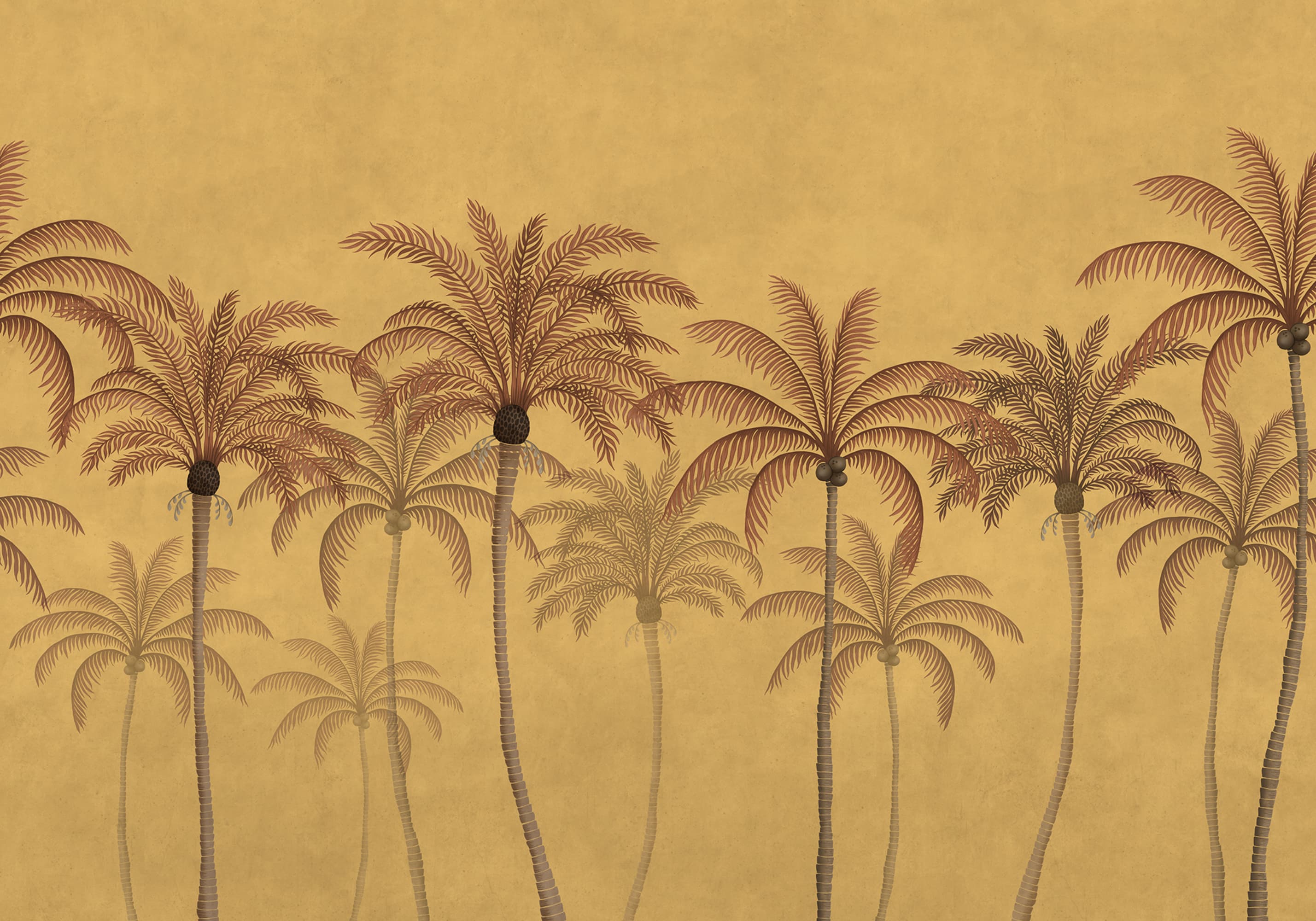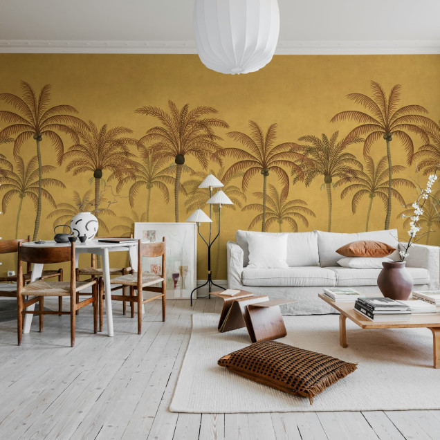 Palm Parade, Yellow, Rebel Walls Tapet cu palmieri galbeni pentru un decor tropical