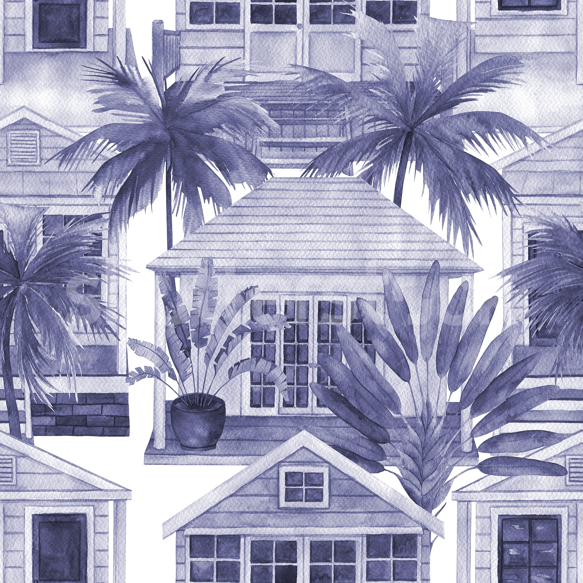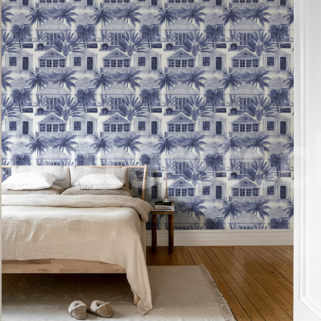 Palm Residence, Blue, Rebel Walls Tapet cu Motive Tropicale - Oază de Relaxare