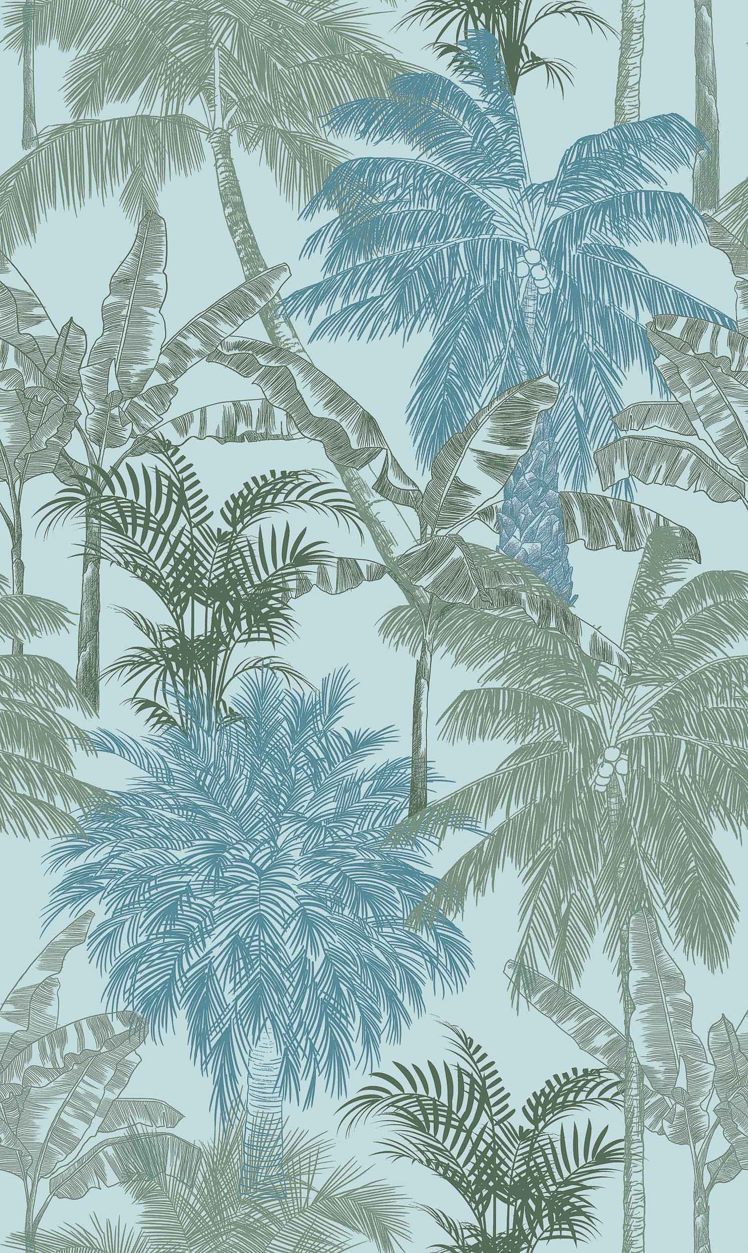 Palms, Caqui, Coordonne, 5mp / rola Tapet cu Palmieri Kaki pentru un Decor Exotic