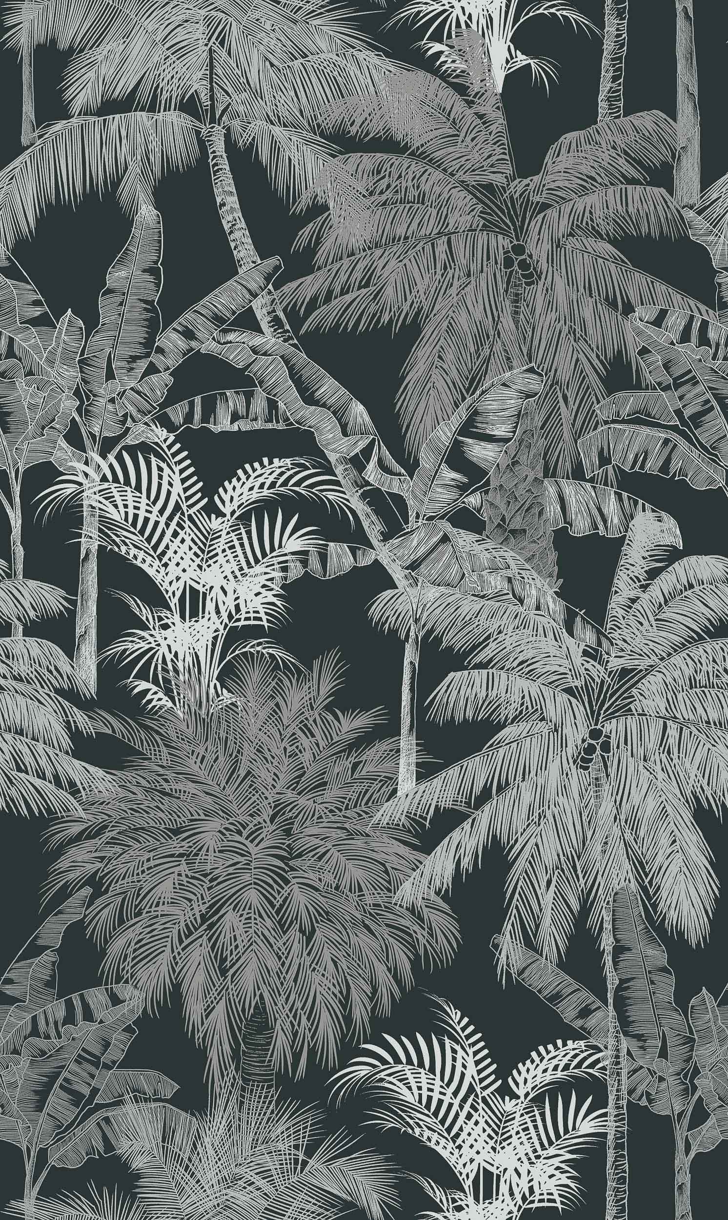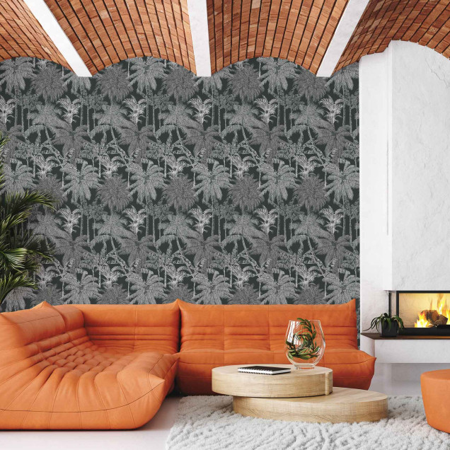 Palms, Carbón, Coordonne, 5mp / rola Tapet Elegant cu Motive Tropicale