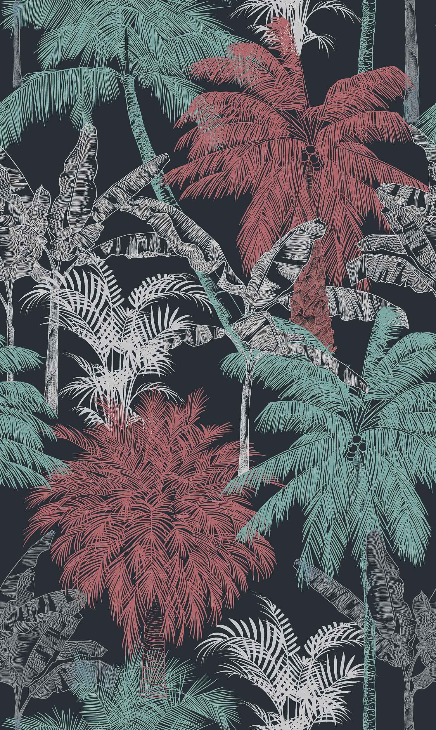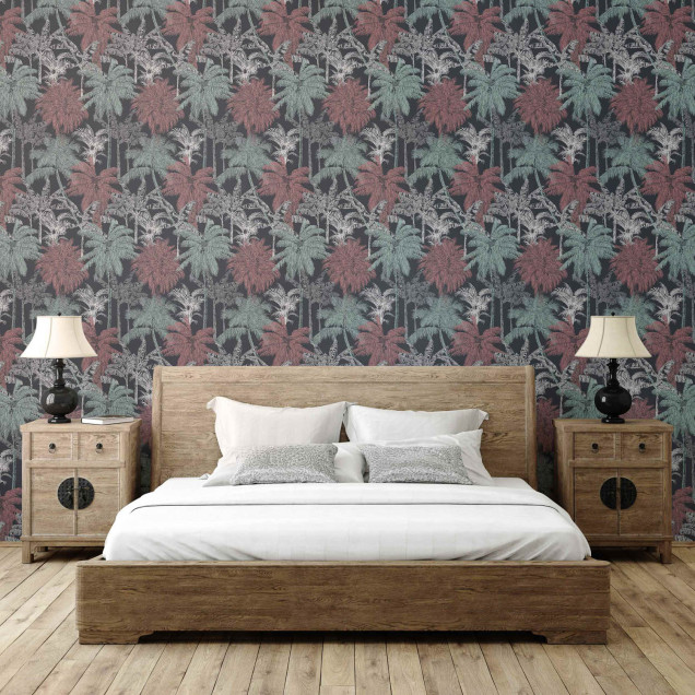 Palms, Coral, Coordonne, 5mp / rola Tapet cu Palme Corai pentru un Decor Exotice