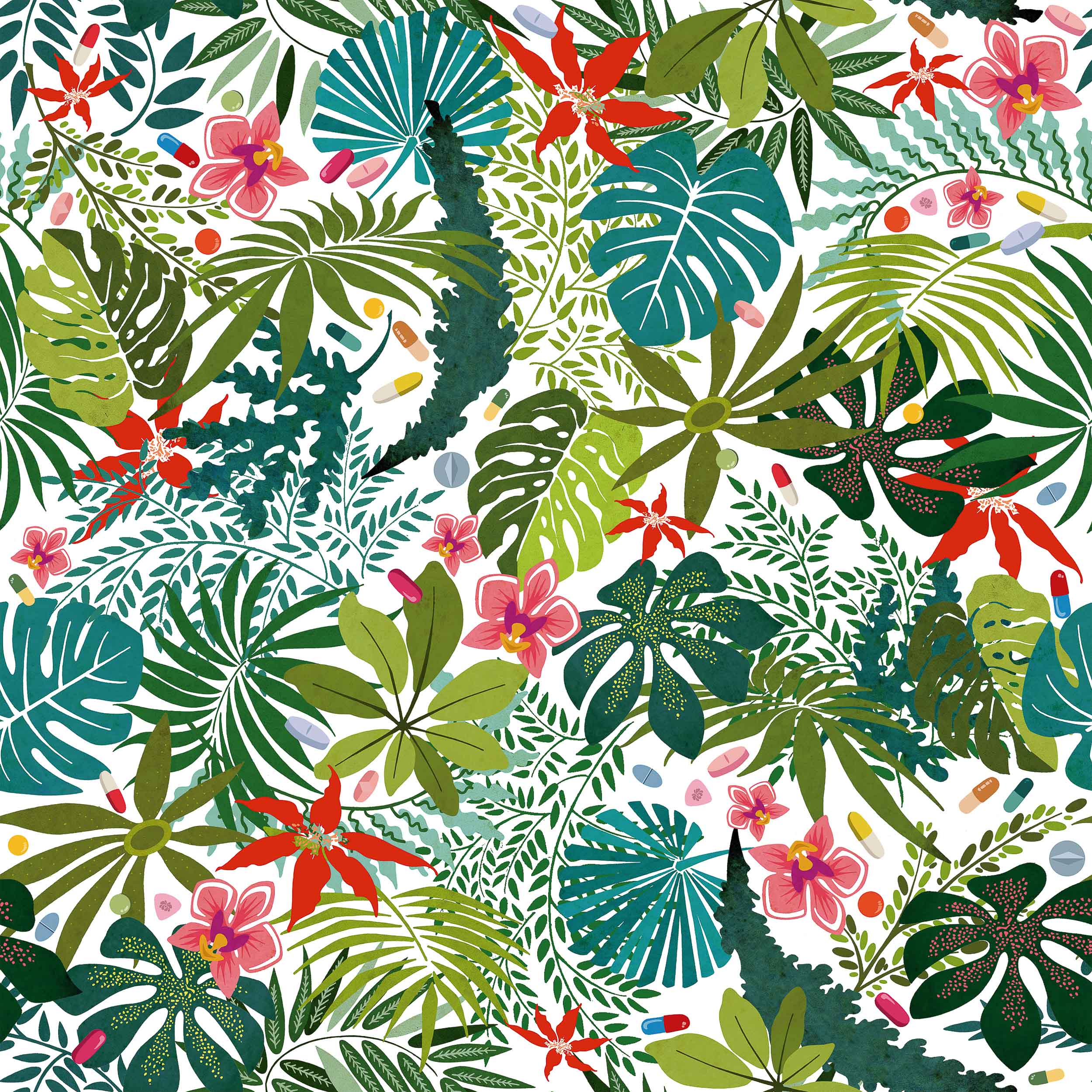 Paraísos artificiales, Blanco, Coordonne, 5mp / rola Tapet cu Design Tropical pentru un Interior Exuberant