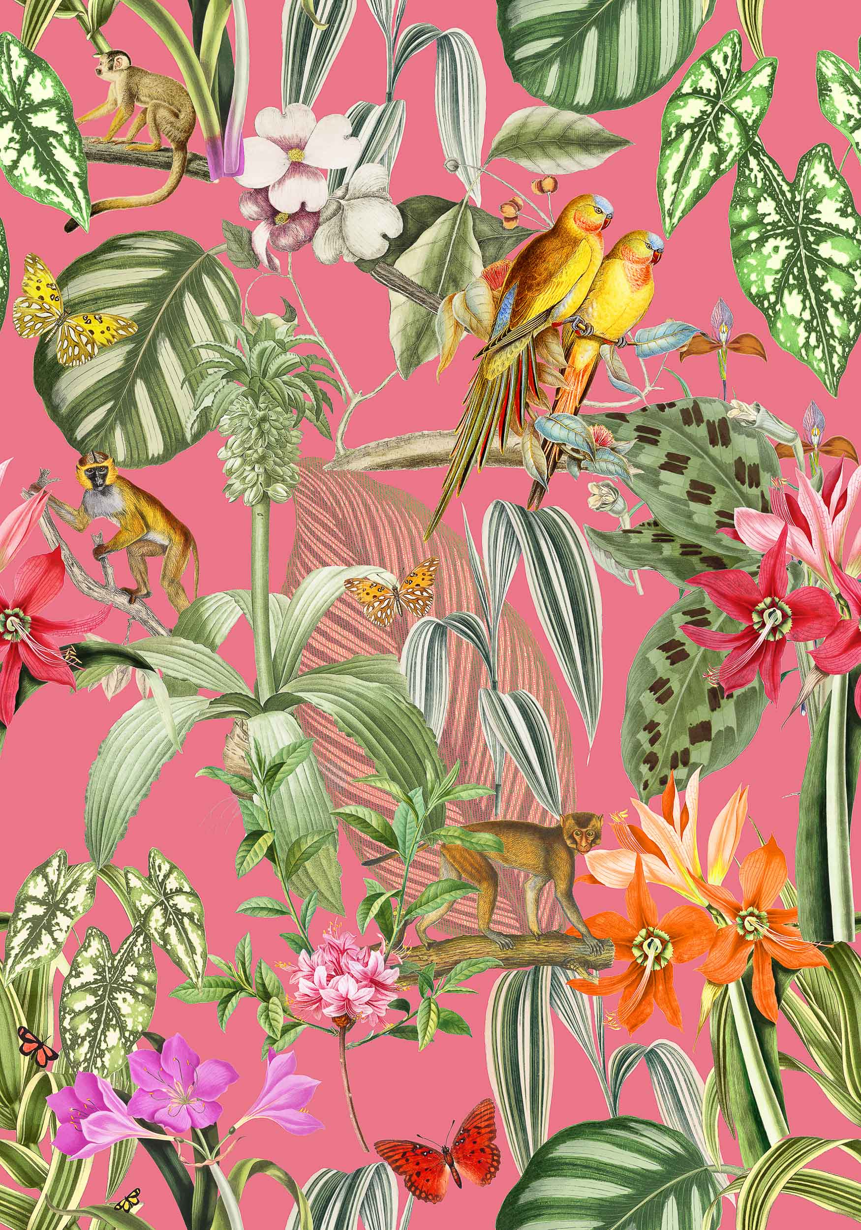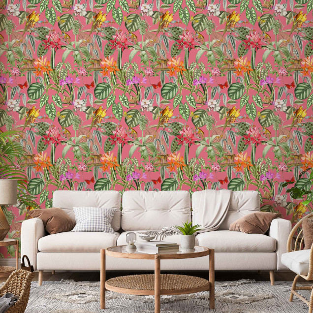 Parrots, Rosa, Coordonne, 5mp / rola Tapet Floral Exotic