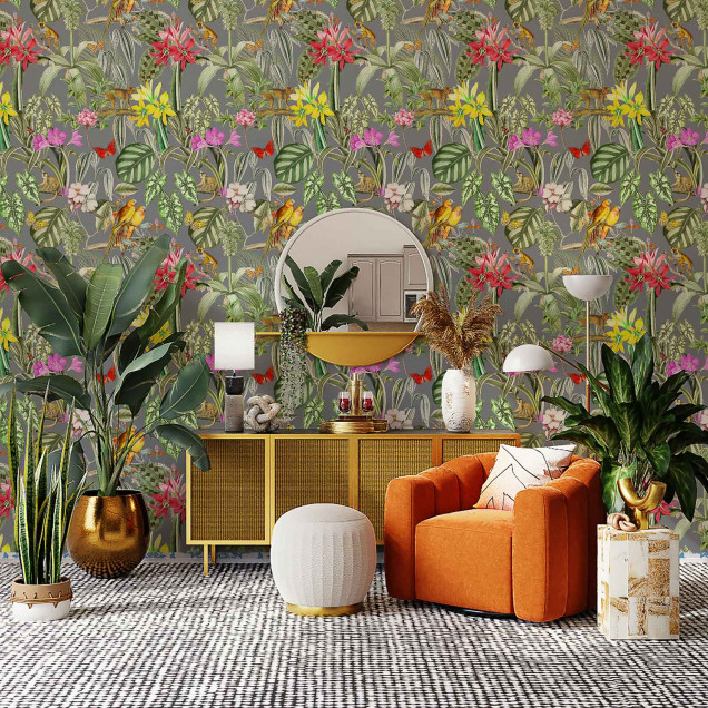Adaugă un strop de exotism interiorului tău! Tapet cu un design vibrant, plin de papagali colorați, vegetație luxuriantă și detalii subtile. Creează un decor unic și plin de viață. Ideal pentru living, dormitor sau birou.