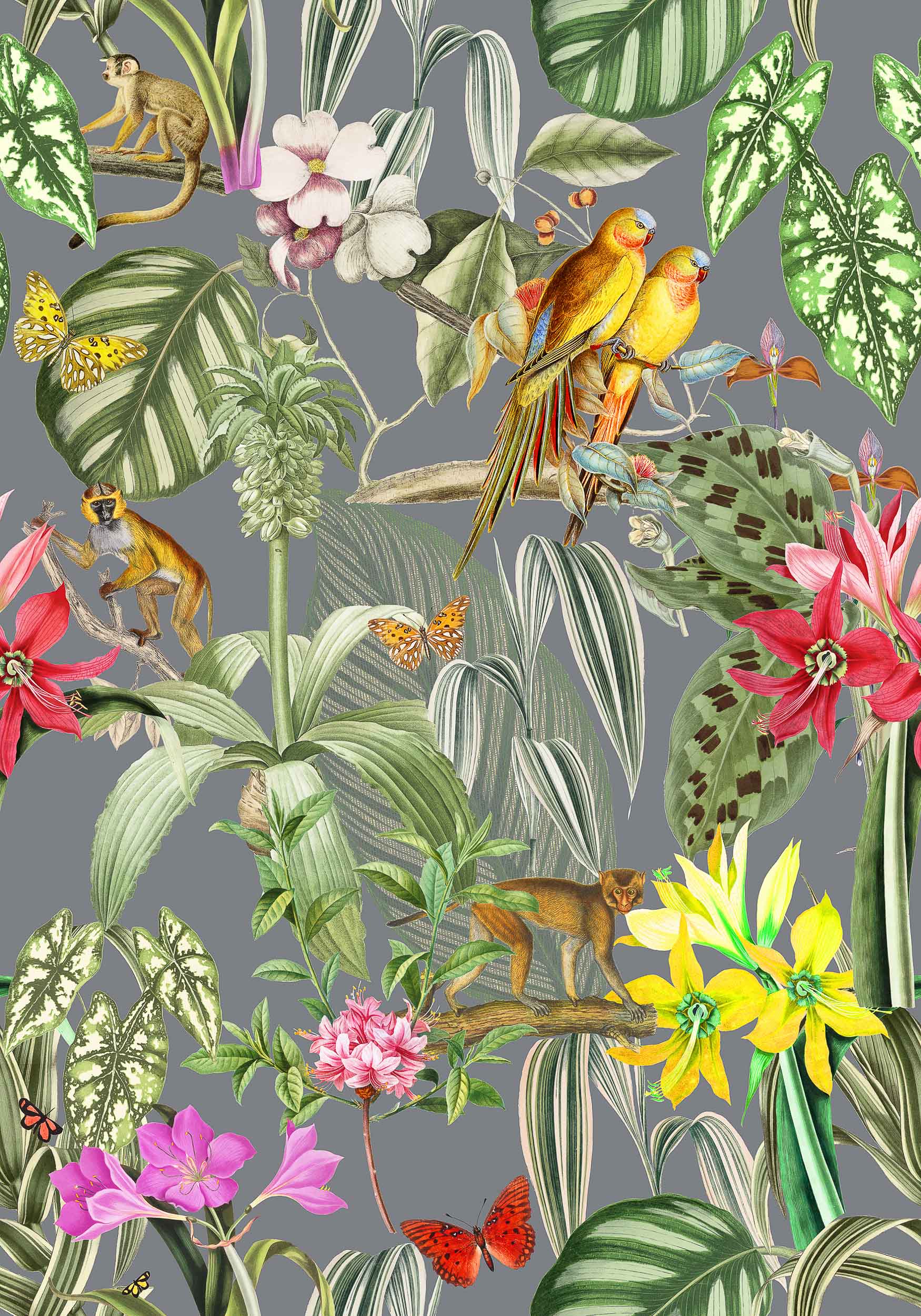Parrots, Tormenta, Coordonne, 5mp / rola Tapet Exotic cu Papagali și Vegetație Tropicală