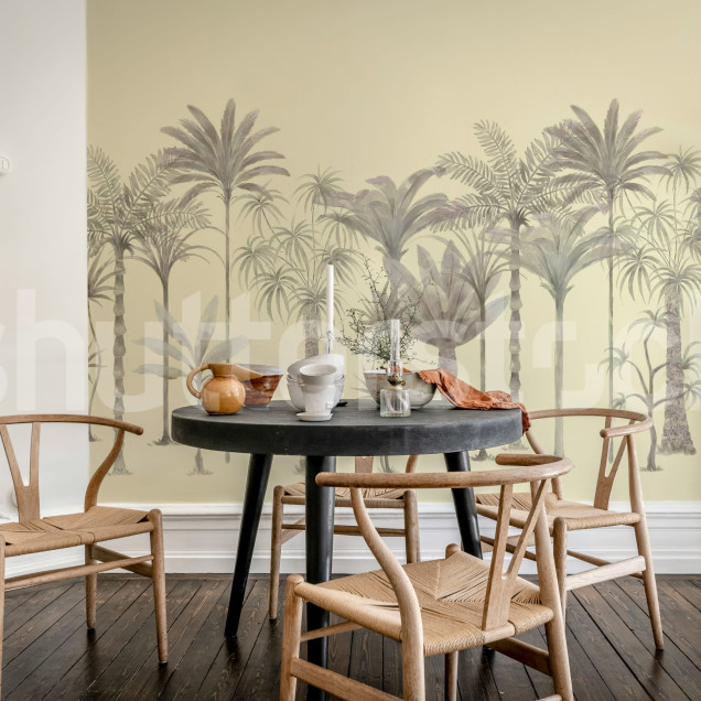 Playful Palms, Yellow, Rebel Walls Fototapet cu palmiere, design tropical