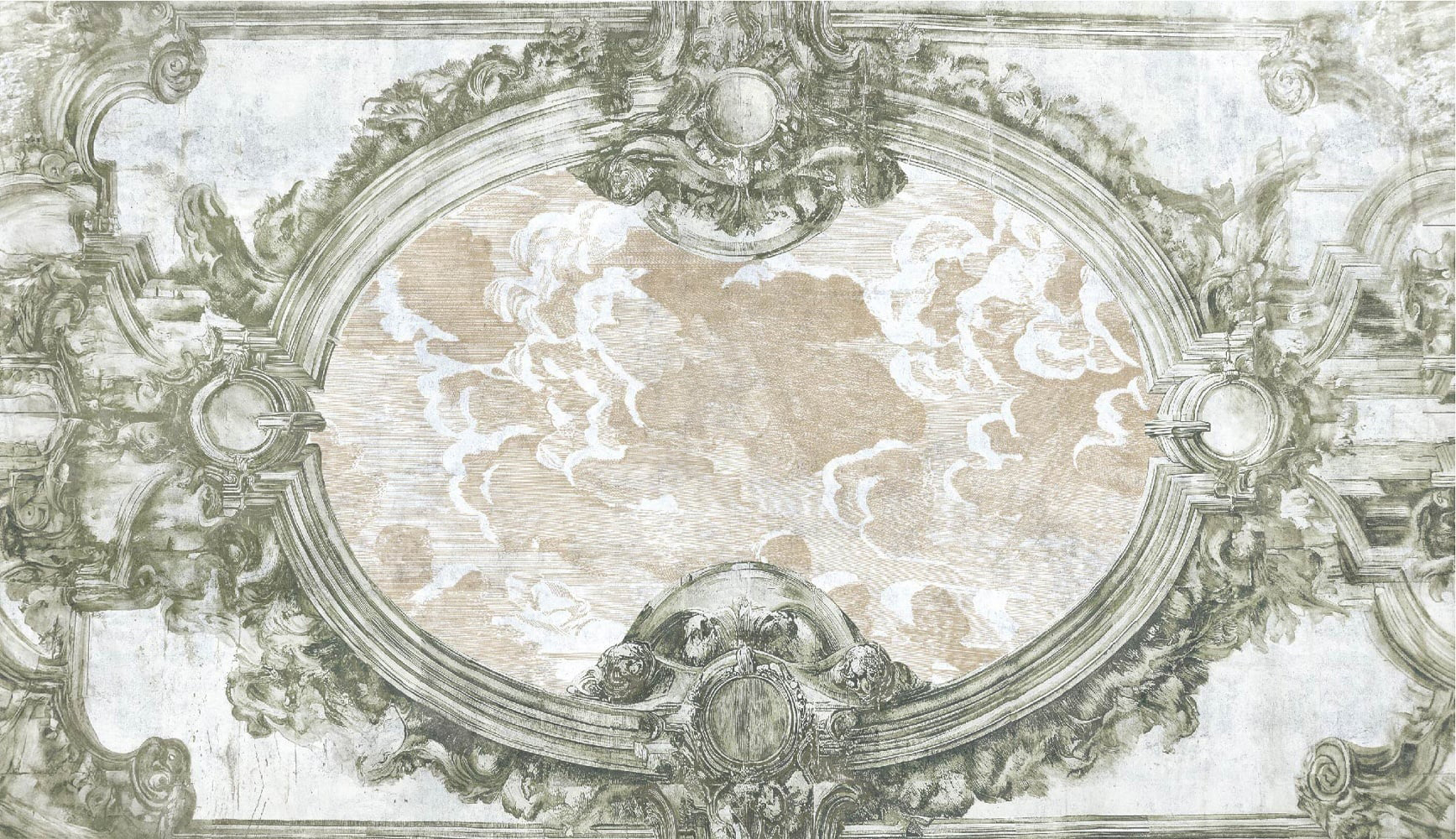 Porcelain Sky este o frescă de o măreție delicată. Nuanțele pastelate și norii picturali creează o atmosferă de rafinament eteric. Inspirat de porțelanul pictat manual și de frescele rococo de pe tavane, acest tapet transformă opulența într‑o viziune blândă și poetică.