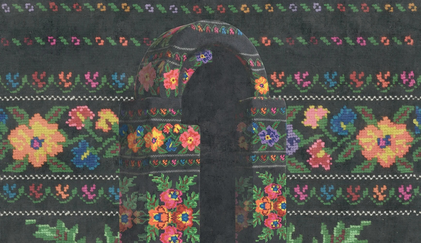 Inspirația vine din portul popular românesc și din universul meșteșugurilor vechi: ii cusute cu răbdare, textile ritualice, covoare de casă, fote și catrințe, motive geometrice și florale care au spus povești, au ținut loc de amuletă și de apartenență. În „Origini”, aceste repere sunt filtrate prin artă modernă și transformate într-un limbaj vizual curat, expresiv, plin de aer. Motivele cusute altădată devin tușe grafice îndrăznețe, ritmuri lineare și compoziții aproape arhitecturale. Bordurile tradiționale se recompun în registre minimaliste, iar contrastele alb-negru sunt puse în scenă cu accente vii, urbane, care dau energie și prospețime.