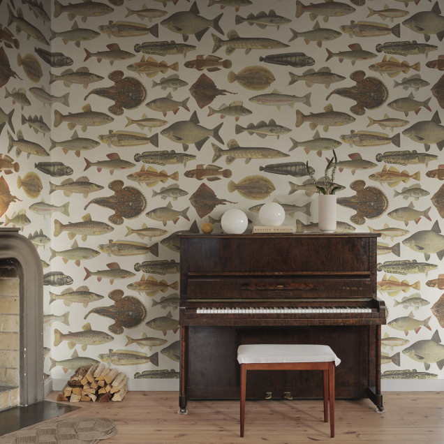 Scandinavian Fish, Beige, Sandberg Tapet cu Motive Scandinave: Eleganță Naturală