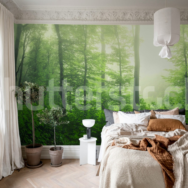 Serene Forest, Green, Rebel Walls Fototapet cu Pădure Verde - Oază de Liniște