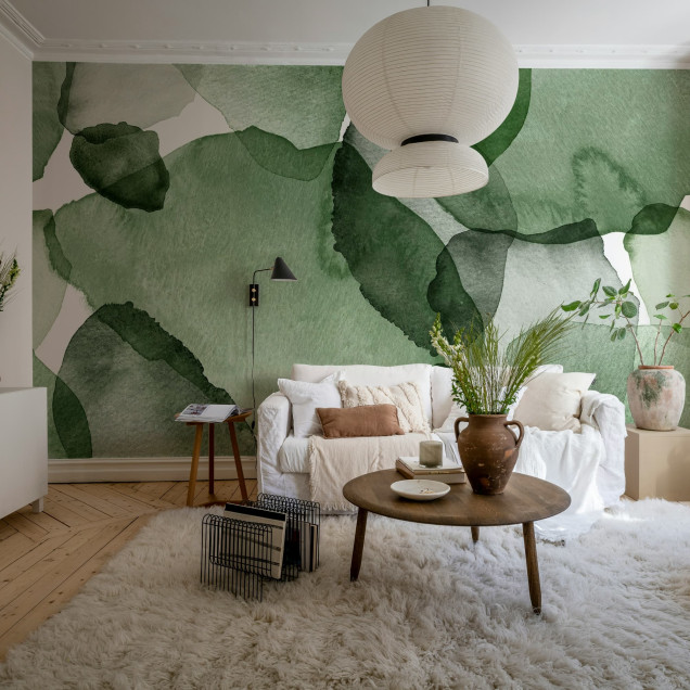 Shadow Petals, Green, Rebel Walls Tapet decorativ cu model floral abstract