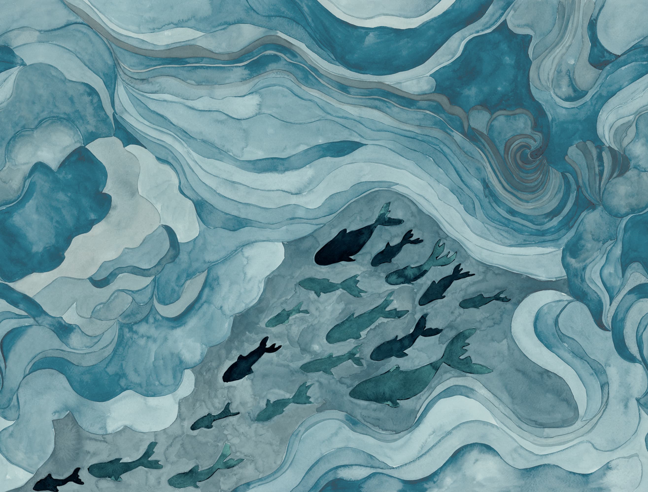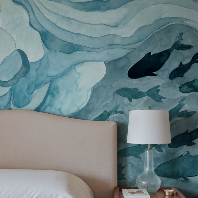 Silent Stream, Blue, Rebel Walls Tapet decorativ cu model acvatic