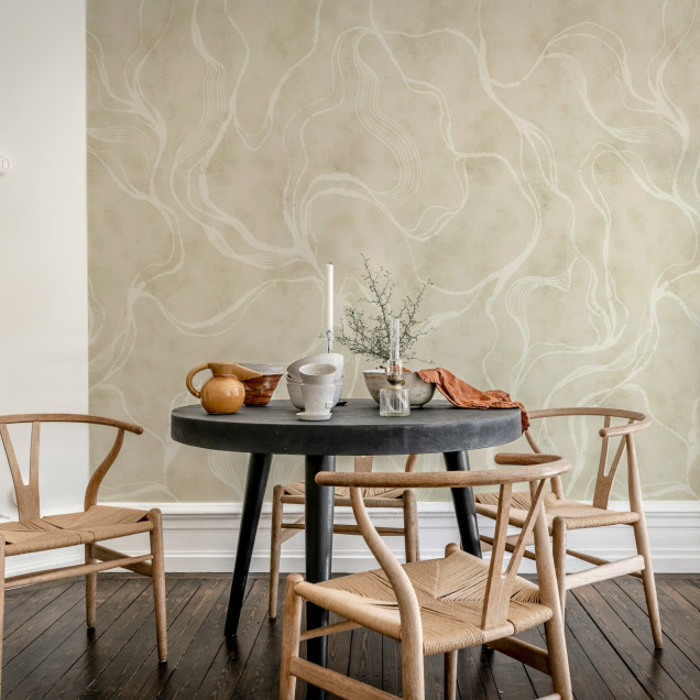 Acest tapet bej cu model subtil adaugă o notă sofisticată oricărui interior. Perfect pentru un decor rafinat și relaxant. Creează un spațiu primitor și modern!Materiale disponibile