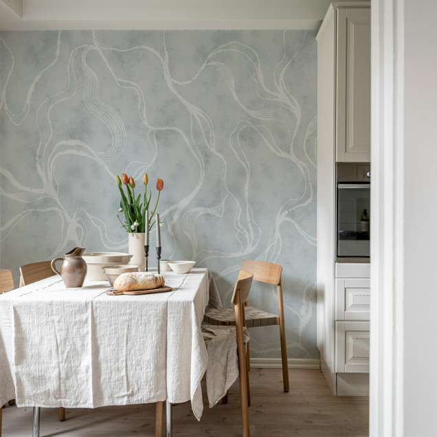 Soft Curve, Blue, Rebel Walls Tapet Elegant cu Linii Delicate
