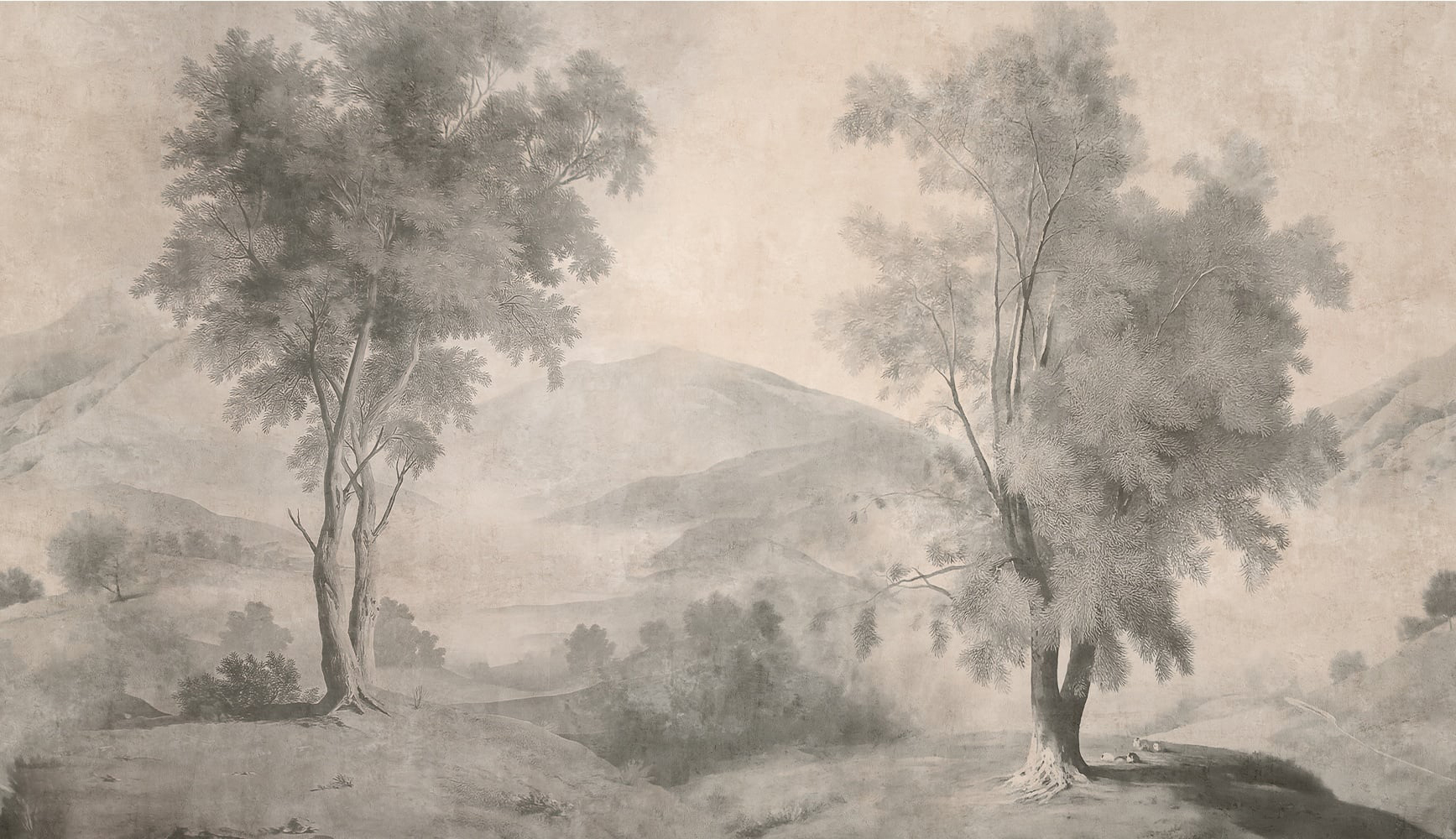 Pictat manual în nuanțe blânde de verde, teracotă pământie și tonuri delicate de albastru, designul emană liniște și măreție. Artizanii VLAdiLA surprind detaliile fine ale scoarței, ramurilor și cerului, insuflându-le o profunzime barocă și o melancolie poetică. Rezultatul este un mural care transformă interioarele în sanctuare pentru contemplare.