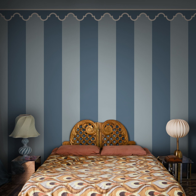 Stripe Chateau, Blue, Rebel Walls Tapet cu Dungi Albastre pentru un Interior Elegant