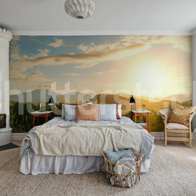 Sunrise Hills, Soft, Rebel Walls Fototapet cu peisaj de dealuri la răsărit