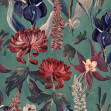 Jardín Rojo, Menta, din colecția Lur, este un design floral, în nuanțe de verde. Flori spectaculoase în nuanțe de roșu aprins unde crizantemele grandioase sunt în centrul atenției.