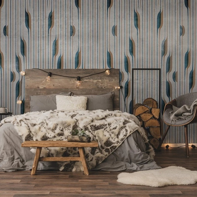 Material ce învăluie pereții într-o textură similară cu cea a inului, oferind profunzime încăperii.