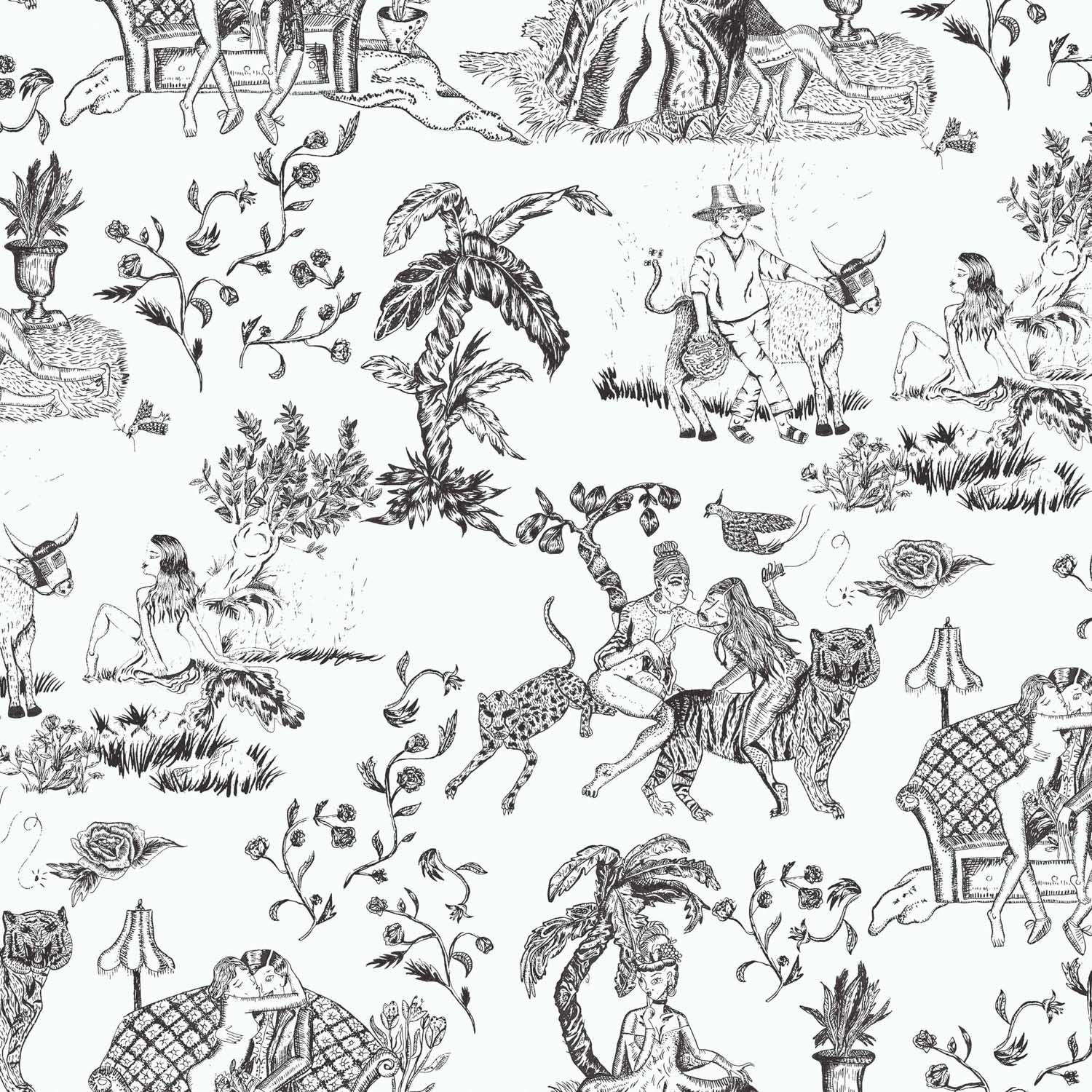 Tipsy Love, Negro, Coordonne, 5mp / rola Tapet Model Clasic Reinterpretat