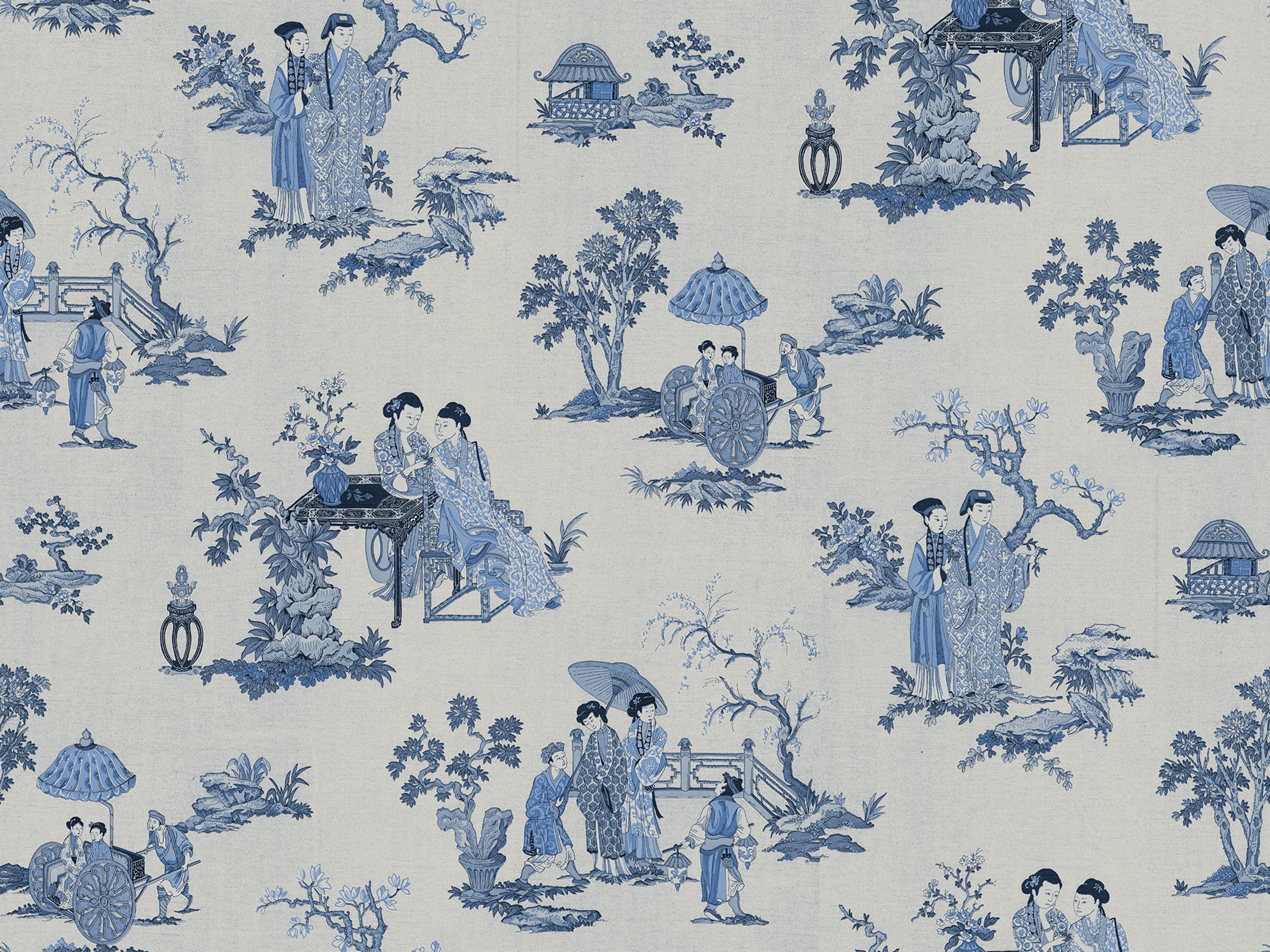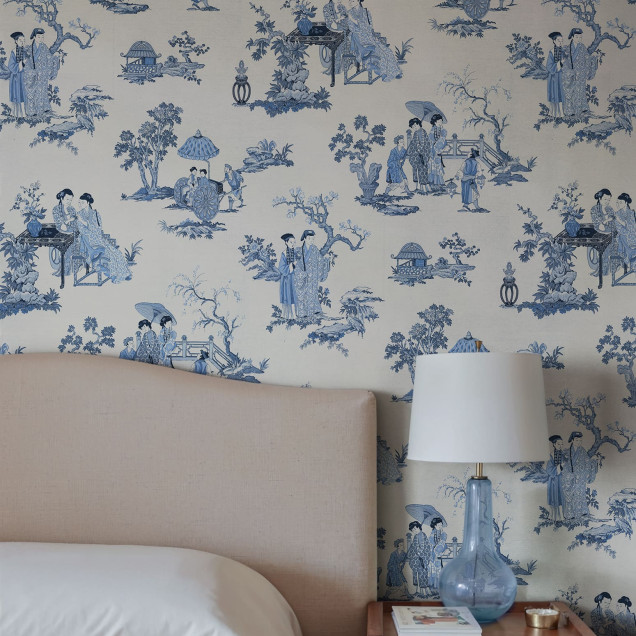 Toile Conversation, Blue, Rebel Walls Tapet Elegant cu Motive Clasice Albastre