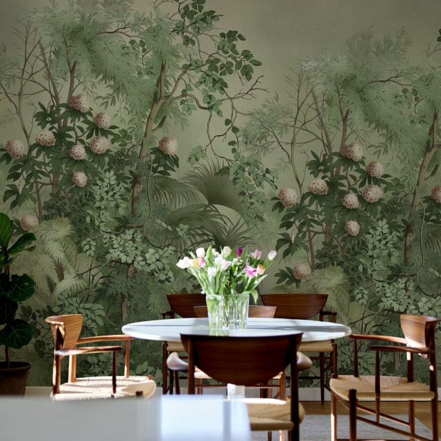 Cu detalii fine și tonuri de verde, acest tapet transformă orice cameră într-o oază tropicală. Ideal pentru un decor relaxant și sofisticat.Materiale disponibile