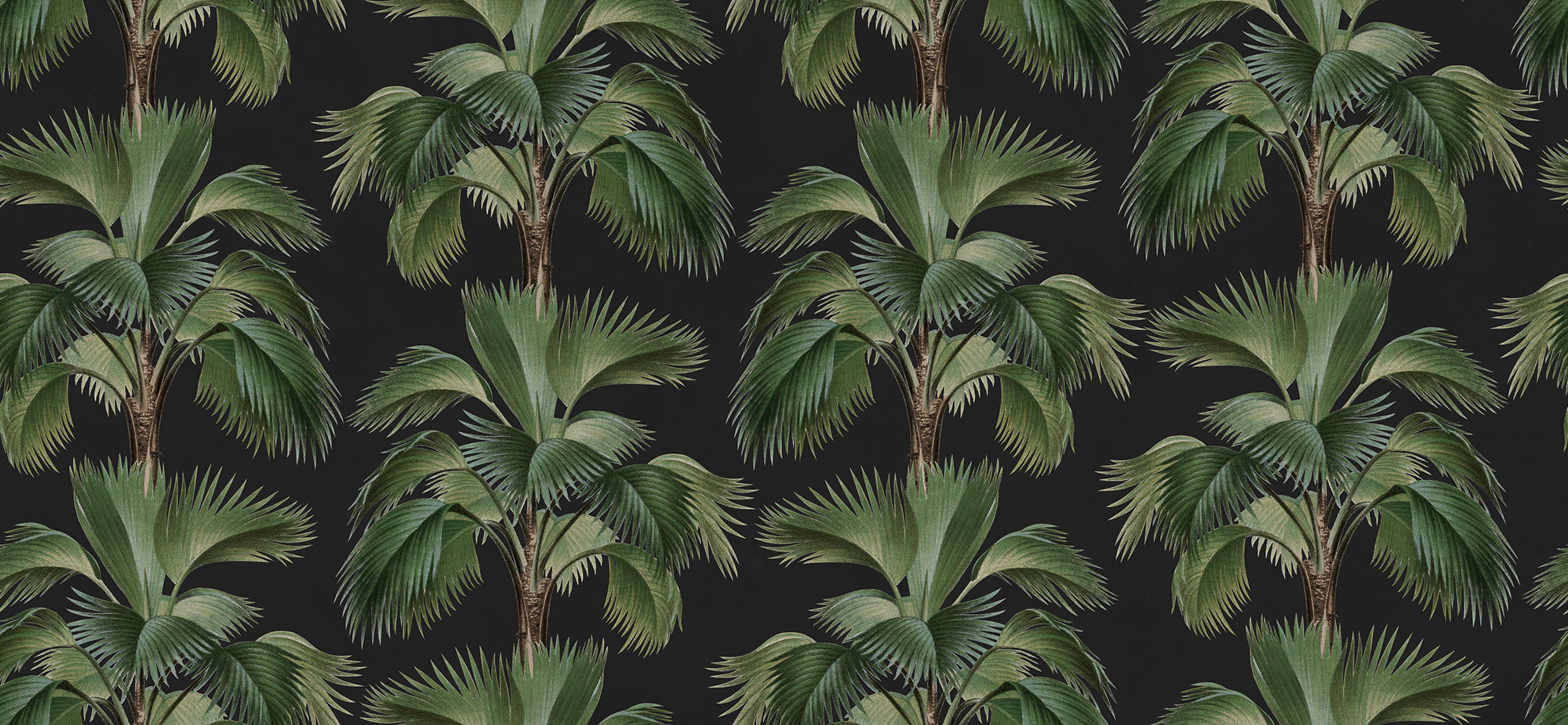 Tropical Rhythm, Black, Rebel Walls Tapet Tropical: Eleganță și Natură pe Fundal Negru